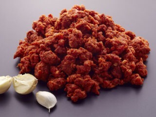 - Carne picada y adobada con sal, ajo y pimienta blanca