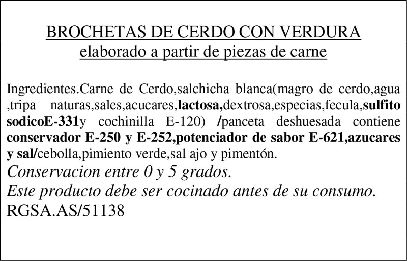 INGREDIENTES: Carne de cerdo duroc Pimiento verde Salchicha Bacon Cebolla SIN GLUTEN