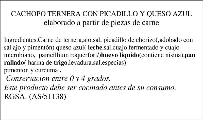 Sé el primero en añadir una reseña Cachopo de ternera con picadillo de chorizo y queso de cabrales