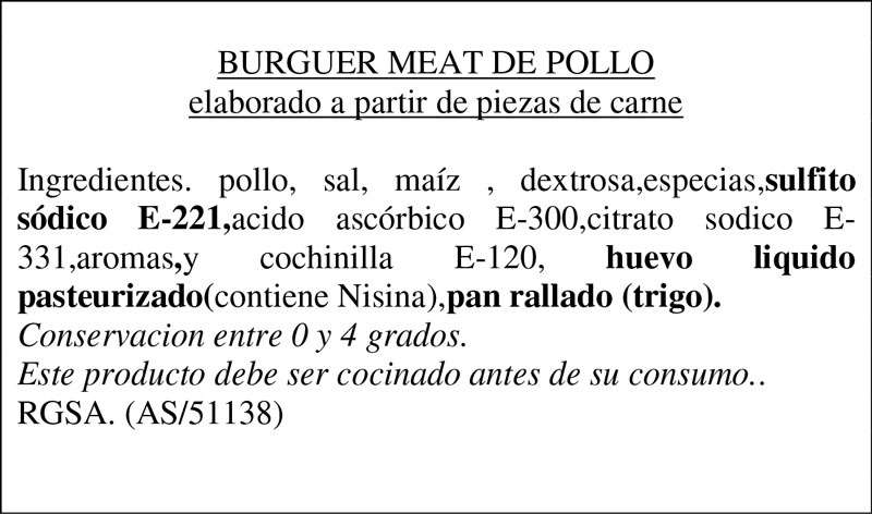 INGREDIENTES: Pechuga de pollo campero criado al aire libre Sal Pimienta blanca – SIN GLUTEN –