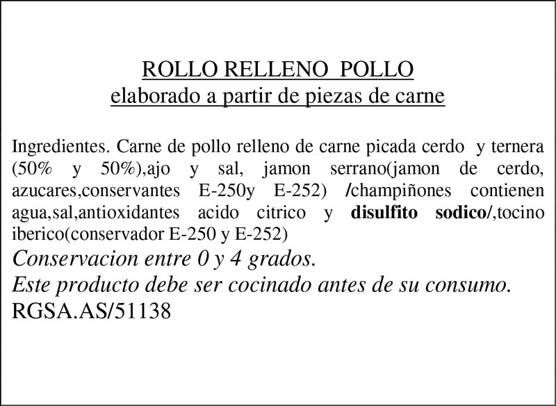 Rollo relleno de pollo campero Descripción corta: